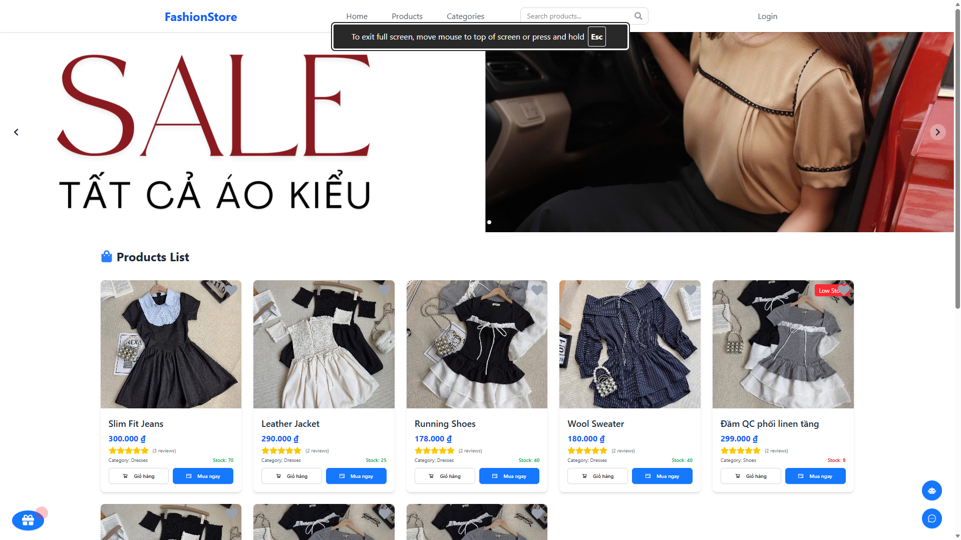 Website bán hàng thời trang hiện đại được xây dựng với ReactJS, tích hợp quản lý giỏ hàng, thanh toán, hệ thống Admin điều hành và Chatbot AI hỗ trợ khách hàng 24/7.